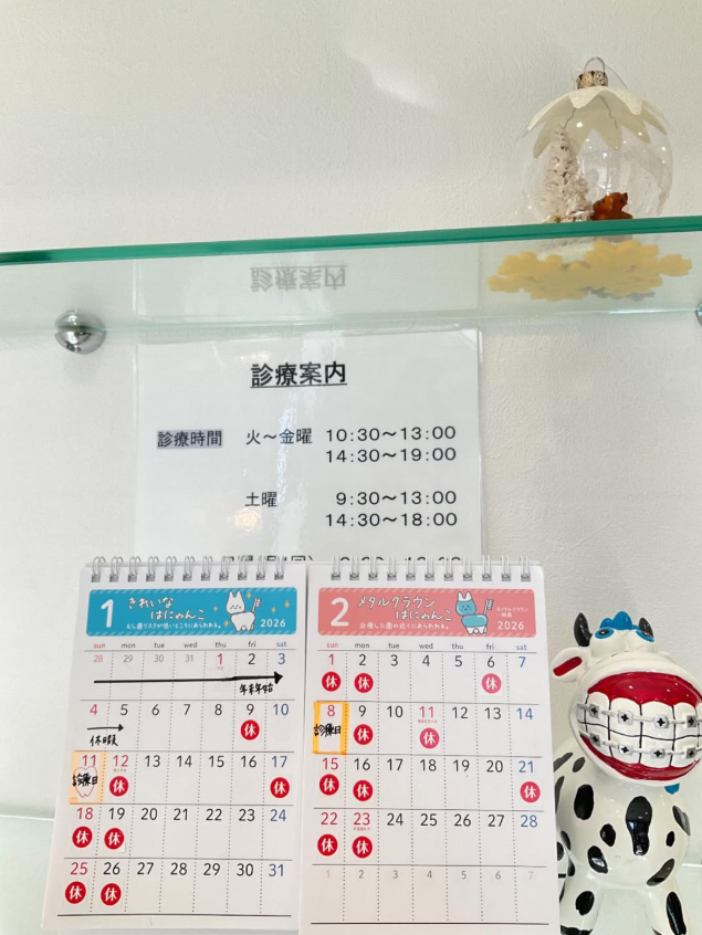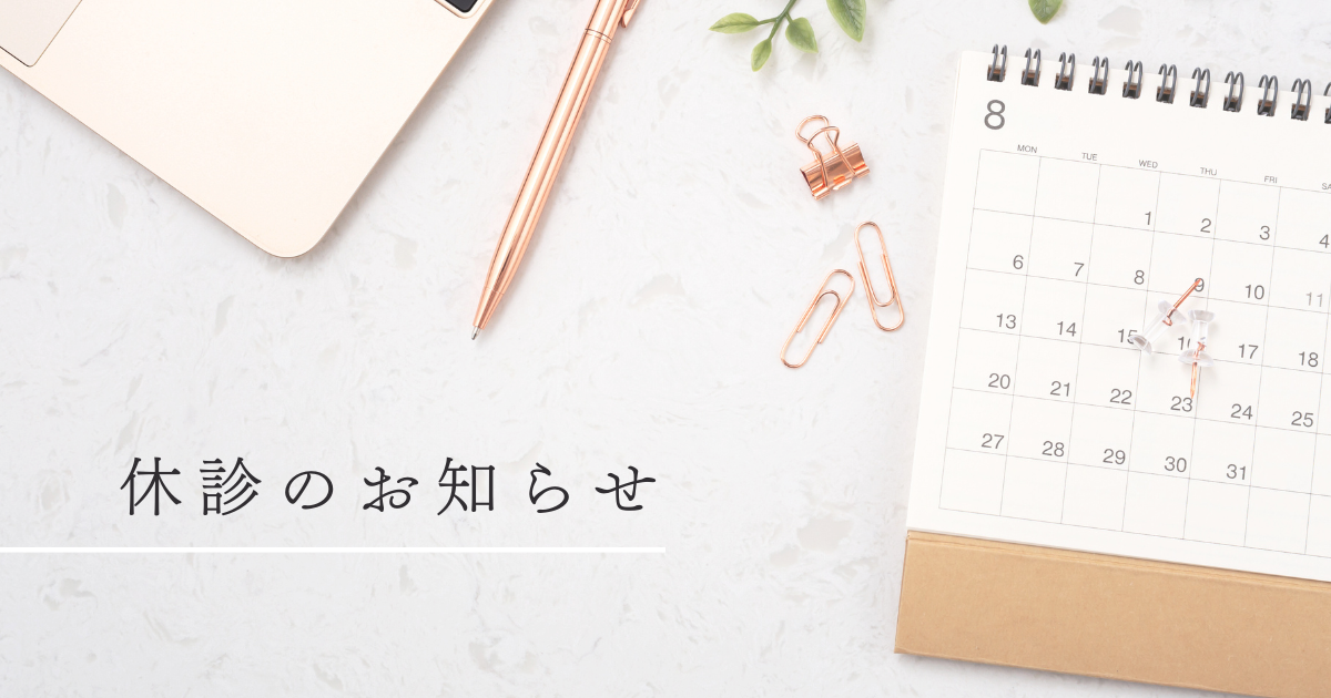 1、2月の休診日 2026 2/03 お知らせ 日曜診療: 1/11、 2/8 9:30-13:00 まで午前診療のみ 1/17土曜、2/16金曜、2/21土曜は、出張診療のため、休診にさせて頂きます。 宜しくお願い致します。 お知らせ URLをコピーしました! 関連記事 11、12月の休診日 3月の休診日